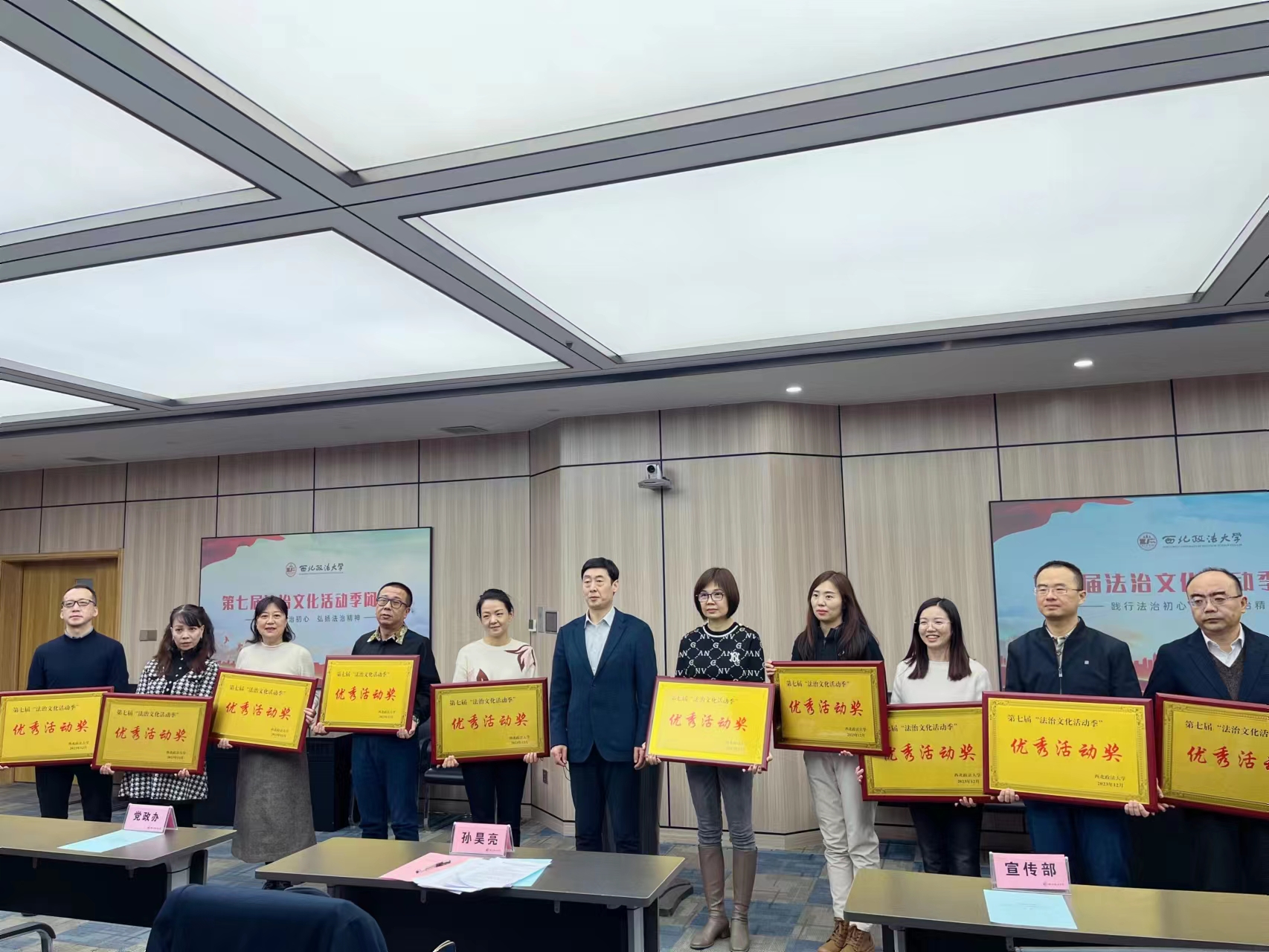 2024年1月11日,学校召开第七届“法治文化活动季”闭幕式,副校长孙昊亮、校党政办、宣传部、学工部、校团委、教务处、图书馆等相关职能部门负责人,各教学单位分管教学工作的副院长参加会议。会上,教务处处长李大勇宣读第七届“法治文化活动季”获奖单位名单,第一版主 获得“优秀活动奖”,副校长孙昊亮为第一版主 颁发奖牌。