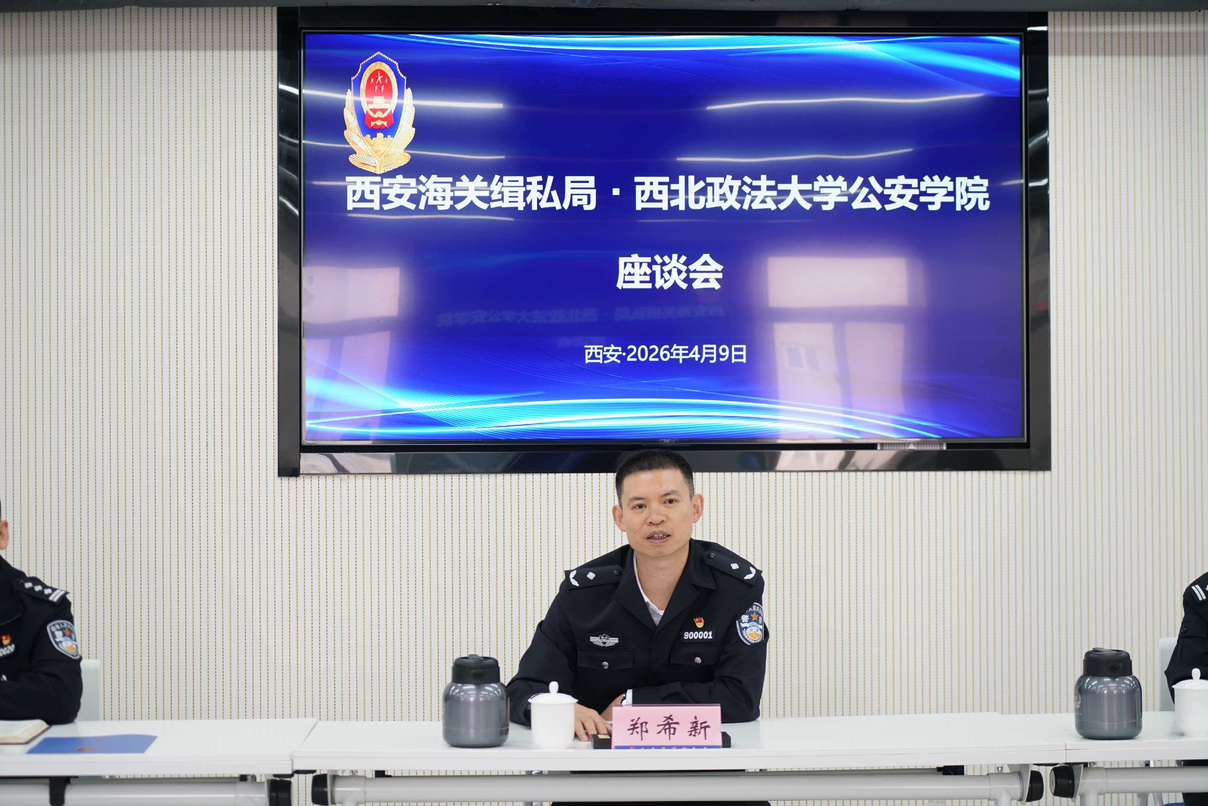 座谈会上,郑希新对学院一行的到访表示欢迎,并全面介绍了西安海关缉私局的发展历程、职能定位、执法实践等情况。他表示,近年来第一版主 与西安海关缉私局在协同实践育人方面合作密切,形成了特色鲜明的育人模式。希望未来双方进一步拓展合作领域、深化合作内涵,推动合作取得更多务实成果。学院党委书记上官亚敏对西安海关缉私局长期以来对学院实习实践工作的大力支持表示感谢,并就深化协同育人、推动党建与业务深度融合等方面提出合作建议。院长刘仁琦介绍了学院的科研优势与代表性成果,并就共建科研创新平台、加强学术交流合作等内容进行了深入阐述。