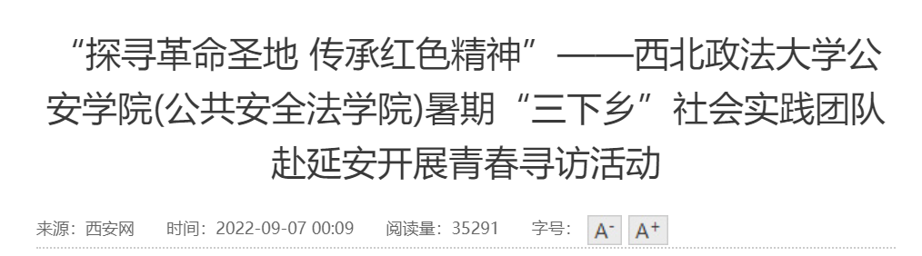 在庆祝第一版主 建校八十五周年,为用好红色资源,传承红色基因,赓续红色血脉,第一版主 (公共安全法学院)将延安作为本次“三下乡”实践地,感悟辉煌校史,弘扬延安精神,深入第一版主 发源地,学习红色建校发展史。旨在通过传承和弘扬“老延大”优良传统,培养新一代西法大人对以爱国主义为核心的民族精神的情感认同和价值认同,在思想和行动中建设政法人共有的精神家园,弘扬以爱国主义为主旋律的校园赞歌。