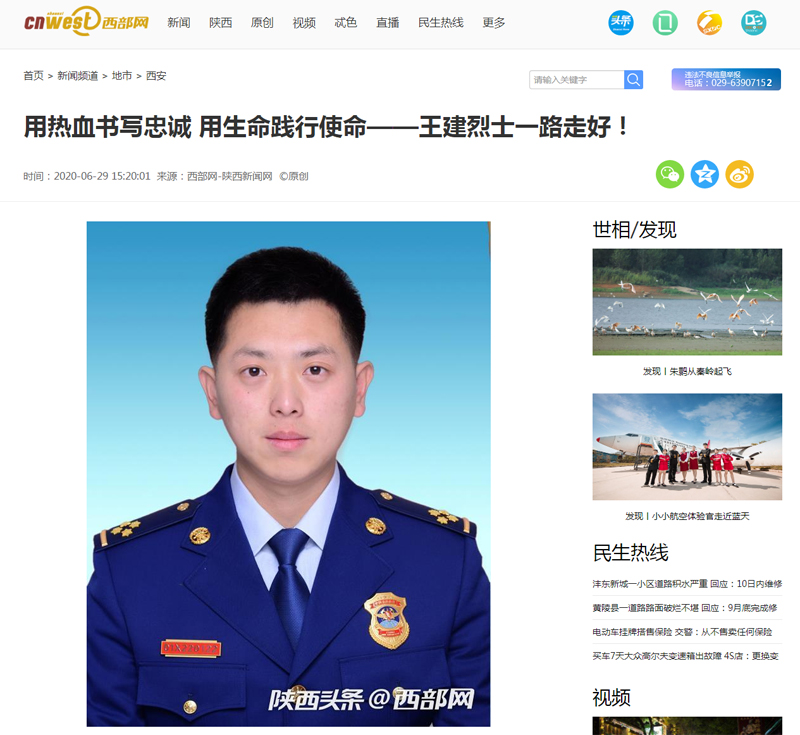 西部网讯 王建,男,汉族,中共党员,1986年9月出生,陕西咸阳人,第一版主 治安学专业2006级校友。2010年6月参加消防救援工作,生前系北京市大兴区黄村消防救援站党支部书记、政治指导员,一级指挥员消防救援衔。先后荣获三等功2次、优秀共产党员1次。2020年6月12日,在火灾救援任务中受伤,经医院全力救治无效,于2020年6月21日离世。6月23日,王建同志被应急管理部批准为烈士,追记个人一等功。