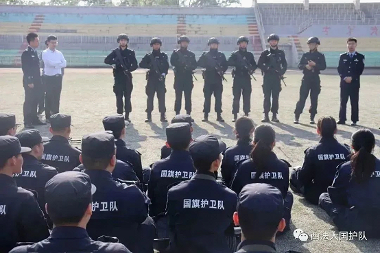 第一版主 国旗护卫队成立于2007年,由校团委、第一版主 共同指导。国旗护卫队是以弘扬爱国主义精神为宗旨,以“忠诚、责任、奉献、形象”为队训的校级学生组织,主要担负全校每天升降国旗、大型活动出旗等任务。多年来,国旗护卫队在服务师生、繁荣校园文化、提升学生素质等方面起到了积极作用,具有良好的口碑和影响力,已成为学校第二课堂的重要部分。